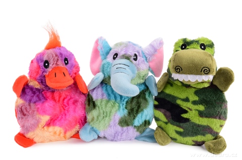 BAREVNÁ ZVÍŘÁTKA, roztomilá pískací plyšová hračka pro tvé mazlíčky se zvukovým efektem. Vyrobeno z mikroplyše.