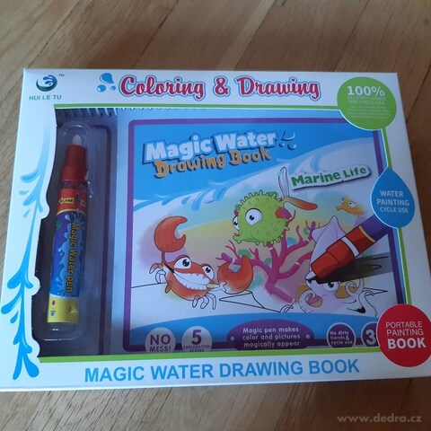 Zábavné a čisté vodní malování! Objev podmořský život pomocí kouzelného vodního pera. Naplň pero vodou a začni kreslit po lehce viditelném obrázku. Každým tahem se začnou objevovat části obrázku víc a víc až nakonec uvidíš celý obrázek v zářivých barvách. Po uschnutí jsou obrázky opět „neviditelné“ a ty je můžeš znovu a znovu objevovat!
