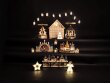 Dřevěný závěsná/stojací hvězda s LED osvětlením, vpředu s bílým finišem a přízdobou. Napájení na 2 tužkové baterie AA 1,5 V.