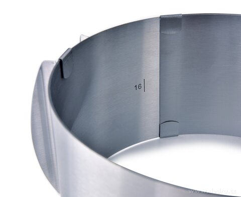 Nastavitelná kulatá forma CREMO z nerezu s průměrem 16–28 cm a hloubkou 8,5 cm. Ideální na dorty, korpusy, želatiny i krémy. Stupnice pro přesné nastavení velikosti.