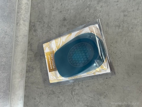 Střed podpatěnky tvoří měkký silikonový gel, který odlehčuje patní kost v místě největší zátěže – ideální prevence i pomoc při bolestech pat a patních ostruhách.