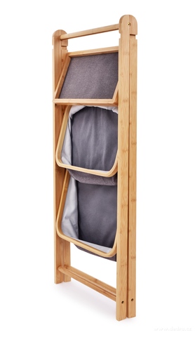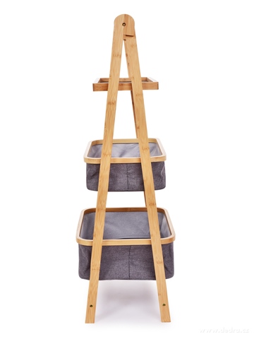 SKLÁDACÍ BAMBUSOVÝ REGÁL se 2 úložnými koši z melange textilie (ve spodní části pevná výztuha) a ve vrchní části s poličkou z bambusu s melange textilií.