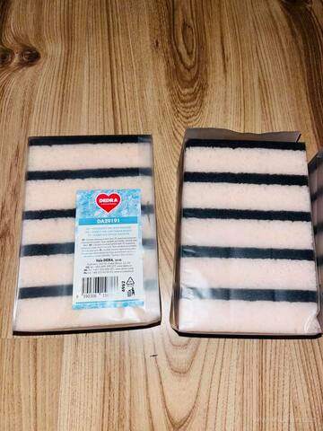 Sada 5 praktických houbiček v decentní přírodní barvě s černou abrazivní stranou. Kombinují jemnou pěnovou vrstvu pro důkladné mytí a drsnou stranu pro odstranění odolných nečistot.