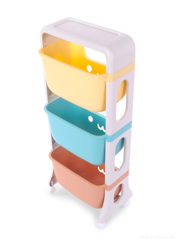 Dětský třípatrový regál TRIO s barevnými boxy přinese do pokojíčku pořádek i hravost. Ideální na hračky, oblečení či školní potřeby. Stabilní, lehký, na kolečkách pro snadné přesouvání.