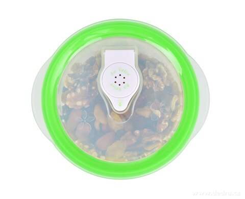 Vakuovací dóza VZDUCHOCUC 600 ml z Tritanu® s ventilem a silikonovým těsněním udrží potraviny déle čerstvé. Hermetická, vzduchotěsná, nepohlcuje pachy ani barvy jídel. Vhodná do myčky, mikrovlnky, lednice i mrazničky.