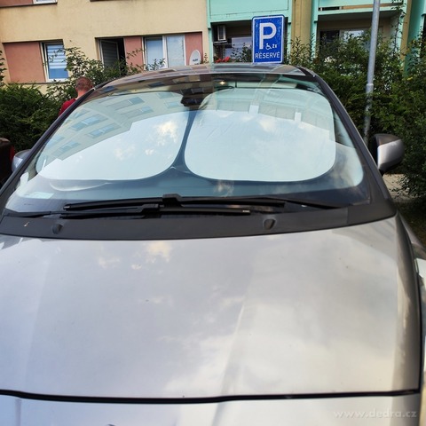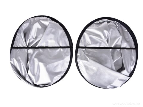 Sada 2 ks skládacích slunečních clon DRIVE na přední sklo auta. Odráží sluneční paprsky, snižují teplotu v interiéru a chrání palubní desku před vyblednutím. Snadné složení s gumičkou.