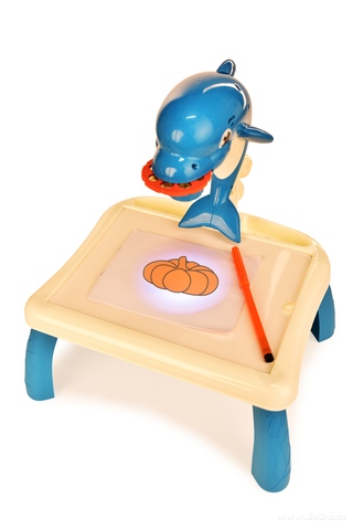 Zábavný delfín 2v1 – projektor na kreslení a logická hra s barevnými kostkami v jednom. Díky promítání obrázků děti snadno obkreslí a vybarví výkres. Pro rozvoj kreativity i logického myšlení. Pro děti od 3 let. Napájení 3× AA (nejsou součástí).