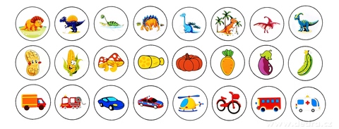 Rozměry: složené cca š 30 x h 27 x v 30 cm, průměr disků 5,5 cm, průměr obrázku cca 7-10 cm.