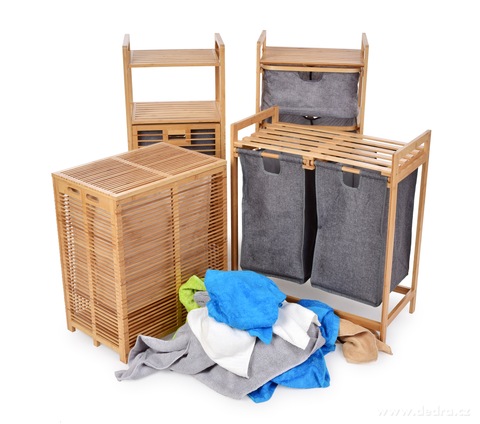Stylový bambusový regál GoEco® se 2 výsuvnými koši na třídění bílého a barevného prádla. Odolná konstrukce do koupelny, ložnice i prádelny. Praktické a ekologické řešení pro každodenní pořádek.