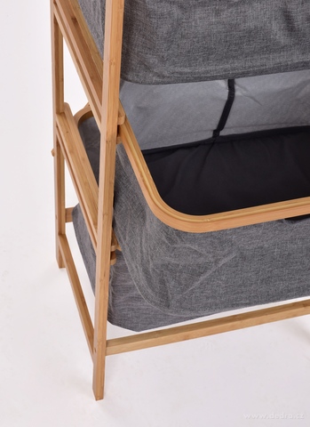 BAMBUSOVÝ REGÁL se 3 výsuvnými úložnými košíky z šedé melanžové látky, nahoře bambusová police.