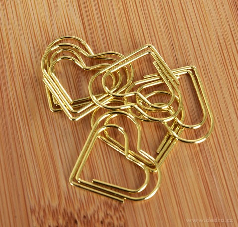 Stylové kancelářské sponky OFFICE ve tvaru srdce ve zlaté kovové úpravě jsou ideální pro elegantní organizaci dokumentů, dopisů či diáře. Využijete je nejen v kanceláři, ale i při tvoření, balení dárků nebo scrapbookingových projektech. Balení obsahuje 50 kusů sponek.