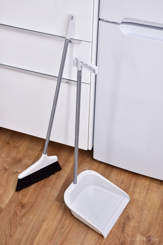NEHRBÍCÍ DUO – 2v1 smeták s dlouhou rukojetí a hlubokou lopatkou (85 cm). Pohodlný úklid bez ohýbání zad, lopatka s ostrým koncem pro snadné nametení. Zacvaknutí smetáku do lopatky a úsporné zavěšení.