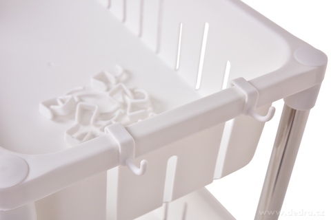 Praktický pojizdný regál TROLEY (93 cm) se 4 policemi a 12 háčky. Vhodný do koupelny, kuchyně, kanceláře či spíže. Snadno přemístitelný na kolečkách, pevný plast + kov, ideální pro úzké prostory a každodenní použití.