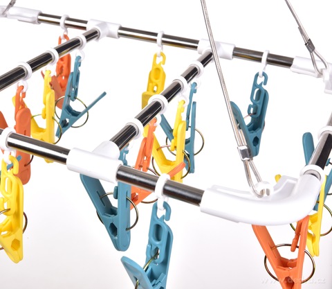 Otočný obdélníkový kolotoč KOLÍČKOVNÍK s 20 barevnými kolíčky šetří místo a usnadňuje sušení drobného prádla. Zavěšení na uzavřený háček brání odfouknutí větrem. Vhodný dovnitř i ven – ponožky, spodní prádlo, punčochy uschnou rychleji díky otáčení 360°.