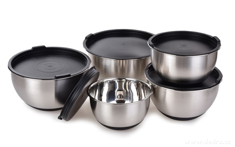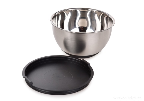 Střední 2,5 L nerezová mísa GOURMET s víkem a protiskluzovým dnem. Odolná, silnostěnná, ideální na kynutí těsta, míchání i servírování. Udrží stálou teplotu a vlhkost.