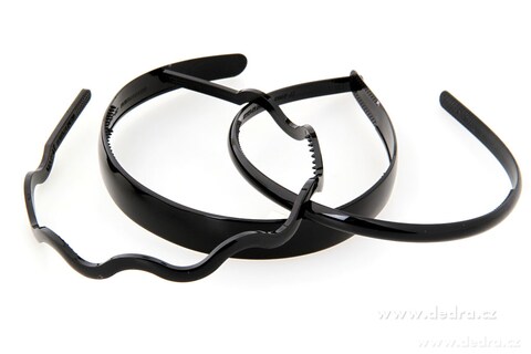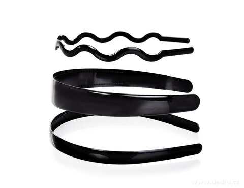 3 ks sada čelenek do vlasů, na vnitřní části jsou jemné hřebínky, díky nimž krásně drží tvar vlasů. Vyrobeno z plastu. Rozměry: široká čelenka š 2,4 cm, úzká čelenka š 1,2 cm, vlnkovaná čelenka š 0,6 cm.