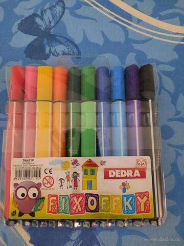 Sada 10 barevných tlustých fixů FIXOFFKY s ergonomickým trojhranným tvarem. Skvěle padnou do ruky, a proto jsou ideální pro školáky, předškoláky i malé děti. Fixy mají dlouhou životnost a výrazné, syté barvy.
