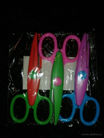 Sada 3 kreativních nůžek s ozdobným střiháním, ideálních pro scrapbooking, tvoření z papíru, výrobu přáníček, dekorací i kreativní balení dárků. Každé nůžky mají jiný střihový vzor, který je přehledně zobrazen na jejich horní straně pro snadnou orientaci při práci.