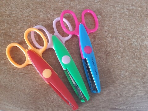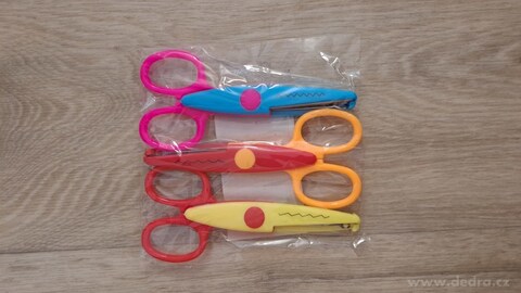 ART | Sada 3 dekorativních nůžek s ozdobným střiháním. Délka 13 cm, kovové čepele, různé střihové vzory pro papír, karton, fólie i modelovací hmotu. Ideální pro scrapbooking, přáníčka a tvoření. Vzor čepele natištěn pro snadnou orientaci. Pro děti od 3 let.