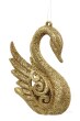 2 ks velkých zlatých třpytivých labutí krajkového vzhledu, výška: 11 cm.