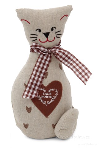 Vysoká kočka - textilní ručně vyráběná dekorace s potiskem.