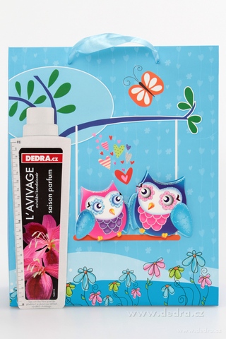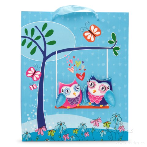 3D dárková taška L, modrá s párem sov | 26 x 10 x 31 cm