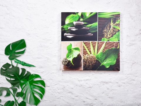 Digitální tisk na pevné canvasové plátno zafixované na pevném MDF rámu. Snadné zavěšení.