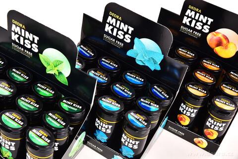 Sada 12 ks mátové osvěžující pastilky bez cukru MINT KISS, peppermint, 28 g x 12.