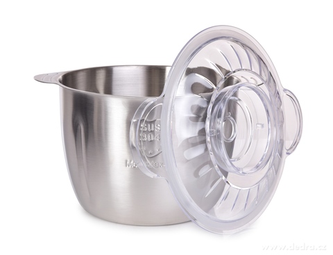 Obsah balení: tělo přístroje s kabelem, plastový kryt se silikonovým těsněním, čtyřnásobný nerezový nůž, nerezová mísa 2,5 l s uchy, návod k použití.