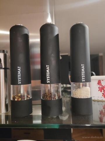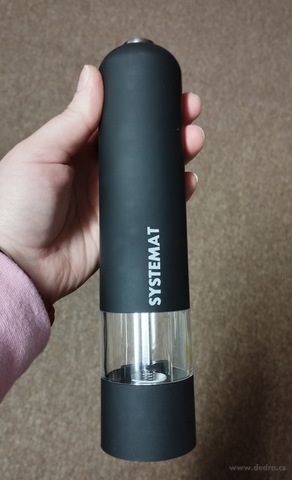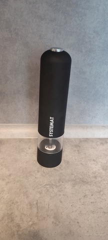 Elegantní elektrický mlýnek SYSTEMAT XXL na sůl, pepř a koření s LED osvětlením a nastavitelnou hrubostí mletí. Ergonomický soft-touch povrch, keramický mlecí mechanismus a jednoduché ovládání jedním tlačítkem. Na 4× AA baterie. Výška 22 cm.