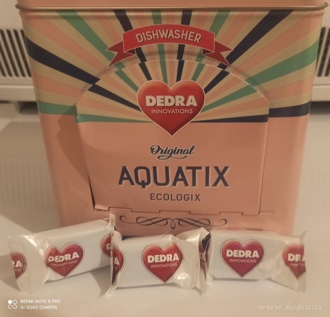 AQUATIX® ECOLOGIX SUPERTABS jsou moderní multifunkční tablety do myčky s novým složením na bázi přírodních a biologicky odbouratelných tenzidů. Obsahují nejnovější enzymy, které zvyšují účinek mytí a až o 100 % lépe odstraňují skvrny od čaje a kávy. Ekologické a přitom vysoce účinné – testy potvrdily, že jsou srovnatelné nebo lepší než prémiové ne-eko značky ze supermarketů.