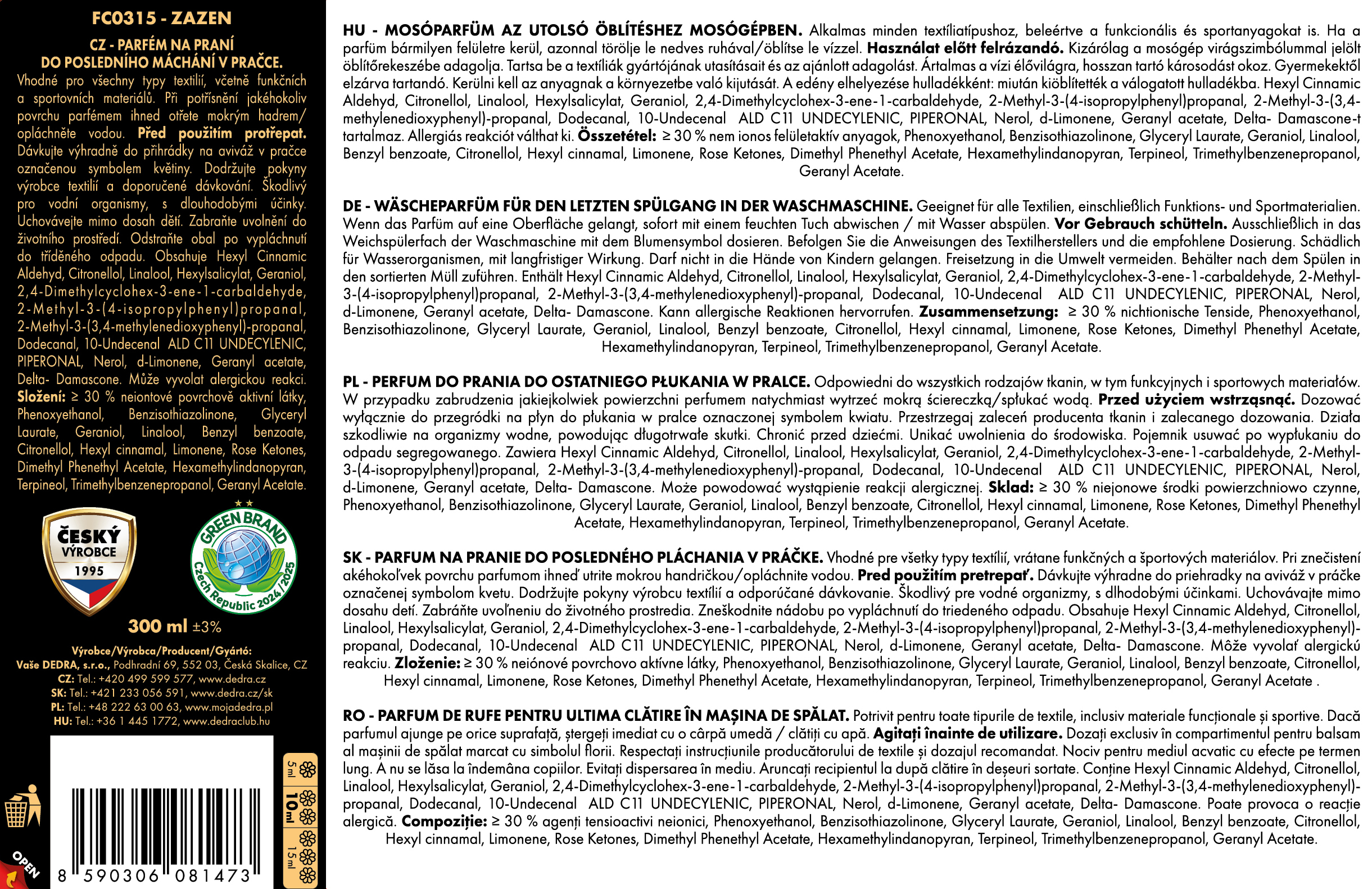 Výrobce / dovozce: Vaše Dedra s. r. o., Podhradní 69, Česká Skalice, Česká republika