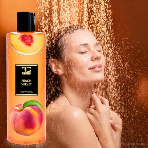 Přírodní šetrný sprchový gel s glycerinem PEACH VELVET, 420 ml.