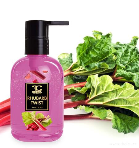 RHUBARB TWIST – přírodní tekuté mýdlo s glycerinem pro jemné čištění a hydrataci rukou. Bez SLS, SLES a parabenů. Šetrné k pokožce, zanechává ji hebkou a chráněnou před vysoušením. Balení 310 ml.