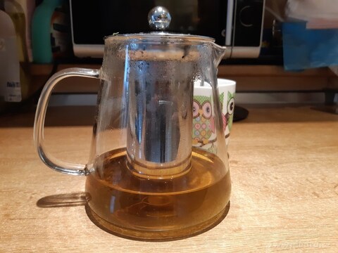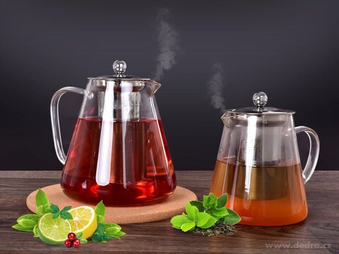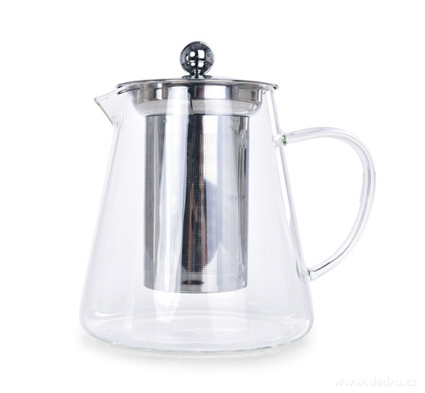 – Materiál: borosilikátové sklo, nerezová ocel (sítko/víčko)