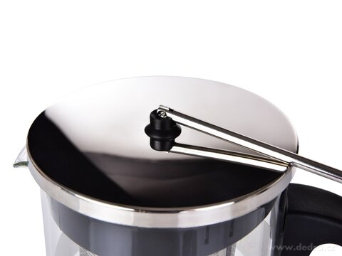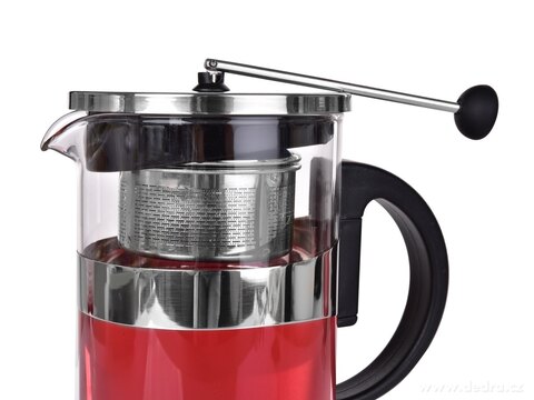 1 L skleněná konvice na kávu a čaj s nerezovým sítkem, kombinace odolného borosilikátového skla, nerezu a plastu. Rozměry: š 16 x h 10 x v 20,5 cm.