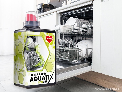 Nový ULTRA RAPID AQUATIX ECOGEL přináší dokonalou čistotu a zároveň respekt k přírodě. Je vysoce koncentrovaný, příjemně voní po limetce a díky revoluční směsi přírodních enzymů účinně odstraňuje i odolné zbytky jídel – bez nutnosti předmývání a bez chemických agresivních látek.