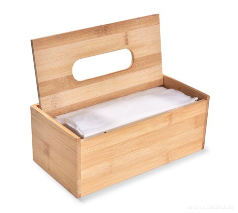Bambusowa szkatułka GoEco® na chusteczki higieniczne, z praktycznym wiekiem na zawiasach i otworem.