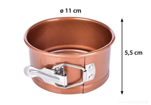 Kompaktowa okrągła forma rozkładana z jakościową złoto-miedzianą powierzchnią nieprzywierającą premium BIOPAN® GOLD, która ułatwia wyjmowanie gotowego jedzenia i wyraźnie skraca czas czyszczenia. Idealna na małe torciki, porcję dla dwojga, mini serniki na zimno lub słone zapiekanki