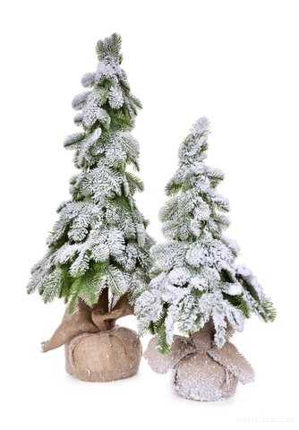 Ośnieżona choinka ŚWIERK na drewnianym pniu.