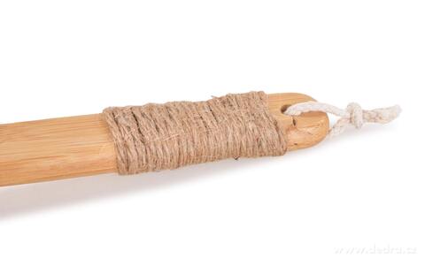 2w1 DWUSTRONNA SZCZOTKA MASUJĄCA do mycia z delikatnym włosiem i końcówkami masującymi, bambusowy uchwyt z przędzą jutową dla pewnego chwytu.