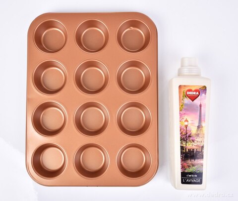 Praktyczna forma na 12 sztuk muffinów lub cupcakes z wysokiej jakości złoto-miedzianą powierzchnią nieprzywierającą premium BIOPAN® GOLD. Dzięki doskonałym właściwościom nieprzywierającym bez problemu wyjmiesz gotowe pyszności, a forma szybko się czyści. Idealna do słodkich i słonych muffinów, mini serników lub wytrawnych babeczek.