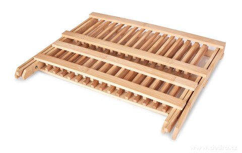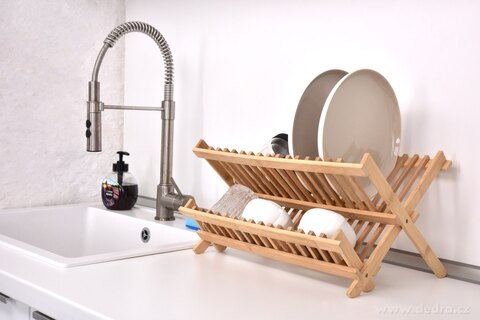 SKŁADANA BAMBUSOWA SUSZARKA do naczyń. Wymiary: 39 x 26,5 x 22 cm (złożona: 39 x 3,5 x 32,5 cm).