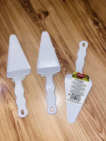 Praktyczna łopatka do krojenia tortów i deserów. Z boku z ząbkami dla łatwego krojenia.