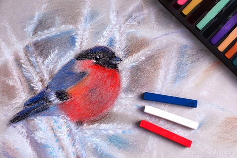 Rysunek kredami można bardzo łatwo rozmazywać, wzajemnie mieszać i cieniować.