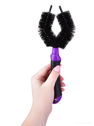 Szczotka w kształcie "V" do czyszczenia rowerów, z nylonovym włosiem.