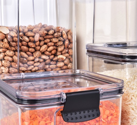 Wykorzystasz do składowania sypkiej żywności bez opakowań np. na makarony, ryż, soczewicę, cukier, mąkę, kawę, herbatę liściastą, orzeszki, przyprawy…