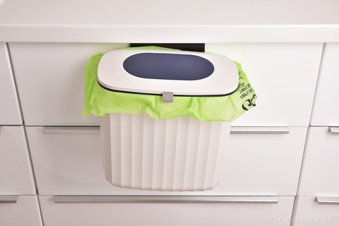 Kuchenny odpadkownik łatwo zawiesisz na drzwiczkach mebli i przy krojeniu czy obieraniu resztki jedzenia nie będą już spadać na ziemię.