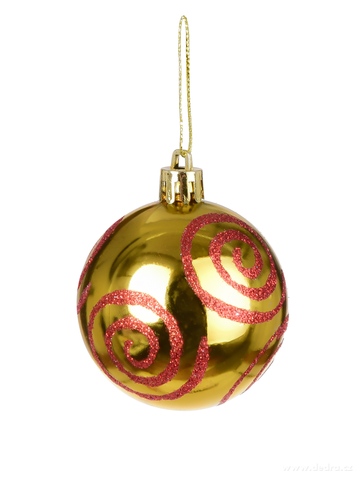 Zestaw 6 szt. bombek w brokatowe wzory | złote w czerwone wzory