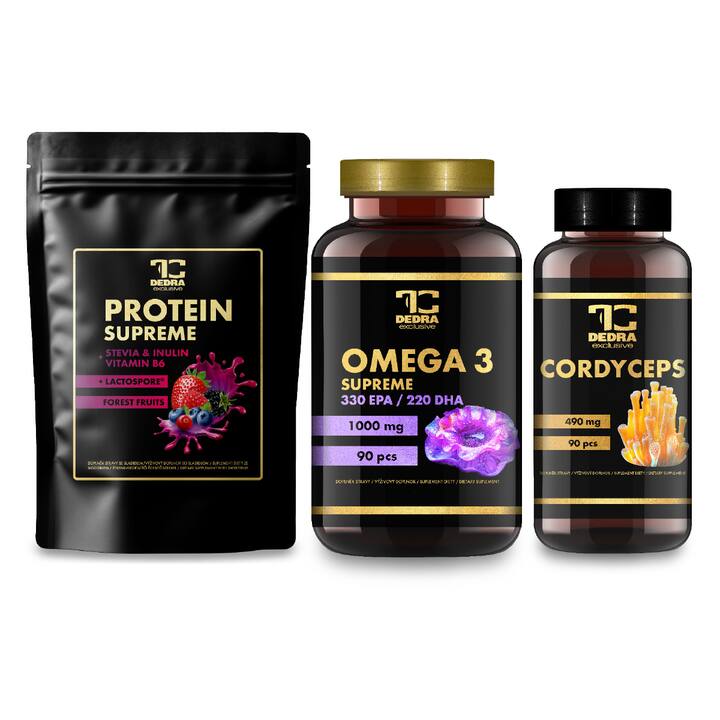 Pakiet dla wydolności i regeneracji. Białko dla mięśni, omega-3 dla serca i stawów oraz cordyceps dla energii i wytrzymałości.
